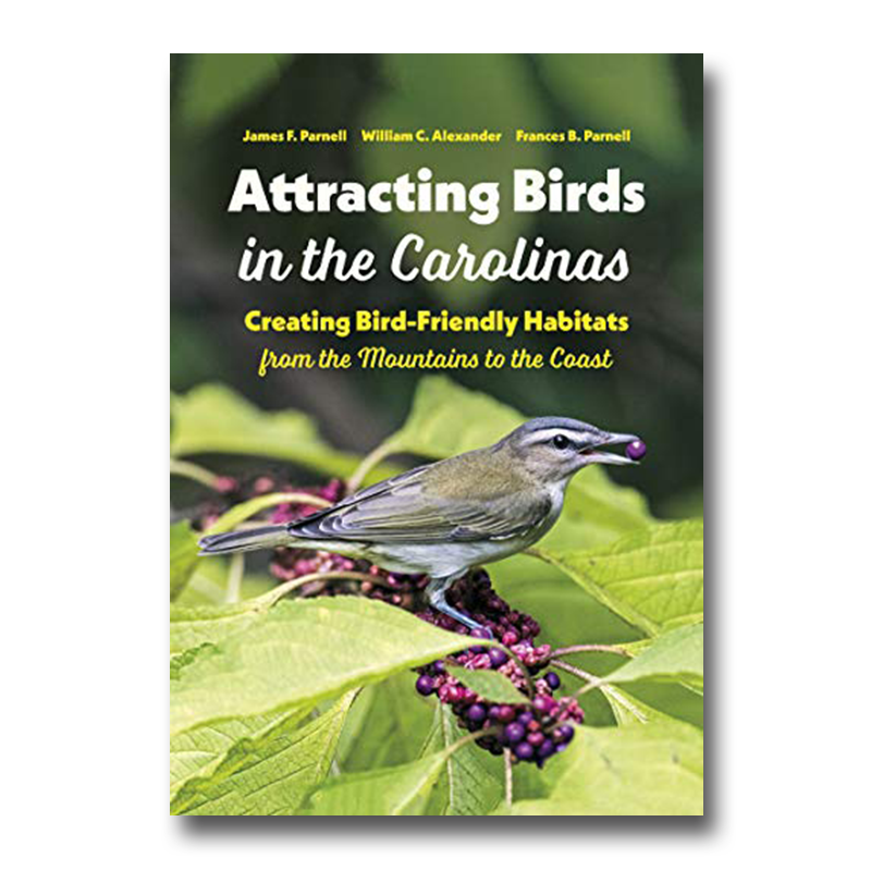 Covering the Carolinas from up-country to the Piedmont to the Coastal Plain, this book is an in-depth yet accessible primer on the many ways that Carolinians can attract birds–from large wildlife refuges to private sanctuaries, and from farms to suburban homes and even apartments. The first book to focus specifically on attracting birds in both states, Attracting Birds in the Carolinas includes information on birds’ basic needs and their annual reproduction and migration cycles, and provides helpful tips on how to modify your outdoor space to invite avian visitors.