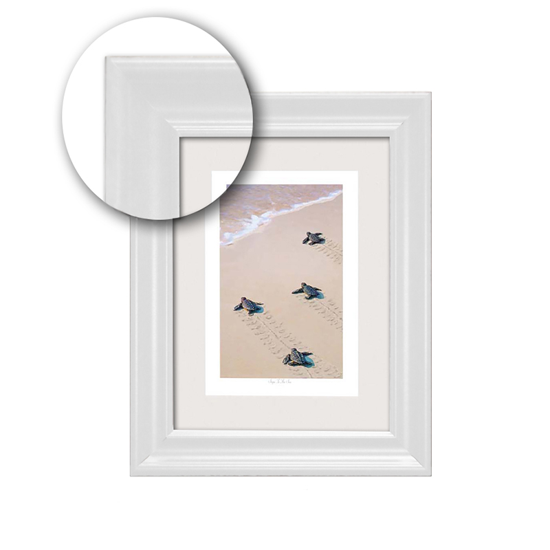 Smooth finish, partially glossy white 2″ white frame. Elegant and will fit with just about any decor. Available in various sizes. Comes with real glass.