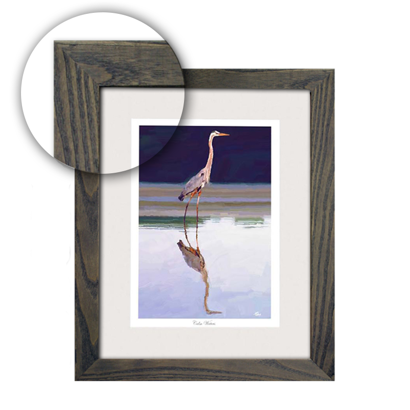Wood finish weathered grey 1.25″ frame. Coastal or Rustic decor. Available in various sizes. Comes with real glass.